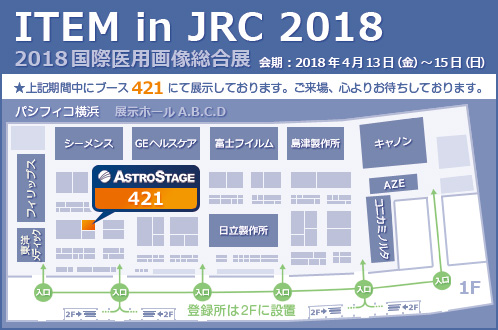 私たちアストロステージは、2018年4月13日(金)〜15日(日)に パシフィコ横浜・展示ホールA(一部)、B、C、Dにて開催される 「2018国際医用画像総合展」に出展いたします。 皆様のご来場をお待ち申し上げております。