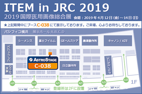私たちアストロステージは、2019年4月12日(金)〜14日(日)に パシフィコ横浜・展示ホールA(一部)、B、C、Dにて開催される 「2019国際医用画像総合展」に出展いたします。 皆様のご来場をお待ち申し上げております。