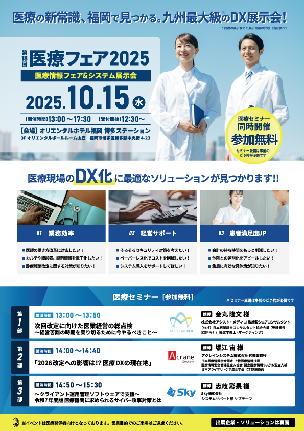 第18回医療フェア2025「医療情報フェア&システム展示会」 詳細はこちら |