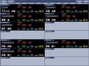 各生体モニタの情報をリアルタイムに集約し、病棟上で一括で表示管理をします。