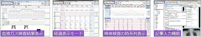 STELLARと連携することで、血液ガス検査結果表示、経過表示モード、検体検査の時系列表示、 記事入力機能などが可能となります。