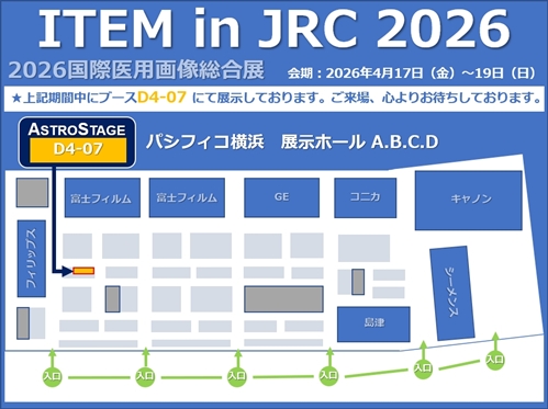 私たちアストロステージは、2026年4月17日(金)〜19日(日)にパシフィコ横浜・展示ホールA、B、C、Dにて開催される「2026国際医用画像総合展(ITEM2026)」に出展いたします。皆様のご来場をお待ち申し上げております。