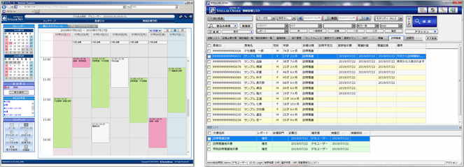 WEBによる訪問スケジュール機能です。担当者ごとに当日の全体のスケジュールがいつでも参照できます。 また看護指示書、看護計画、訪問時記録などの進捗がリアルタイムで参照できるリスト機能も実装されています。。