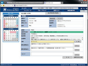 診療予約を日別・週別・月別に切り替えできるカレンダー形式の画面で、 時間枠や空き人数を見やすく表示します。個人名の非表示や色分け表示などにも対応しており、 診療予約を簡潔に行うことができます。