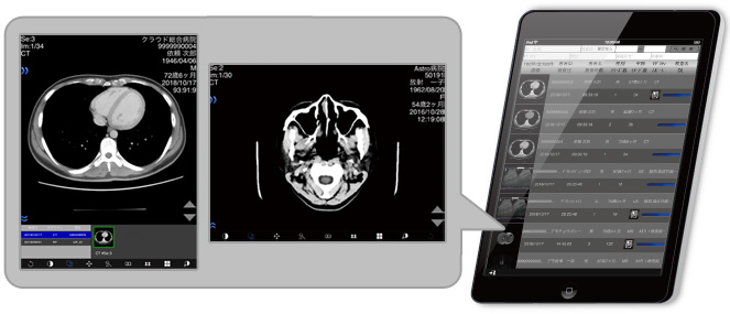 バイタルや検査情報の他に、心電図波形(MFER)、検査画像、DICOM画像なども含めて 健診にまつわるデータは全て収集可能です。 帰着後は院内サーバと連携し、DICOM、検査、波形、計測数値を全てサーバで管理できます。