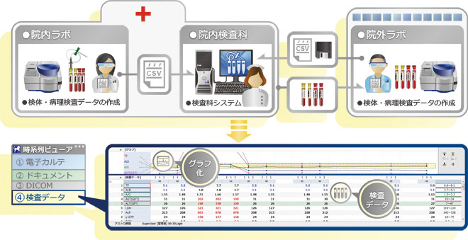・ 時系列ビューアで患者の過去の診療情報を一覧表示