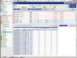 統計では件数推移表により、ラボ、投薬・注射、生理検査、それぞれの年間件数を月単位で表示できます。 前年度比較と、分類構成比率を見るために2種類の帳票を用意しています。項目と年月のクロスで、件数を集計します。
